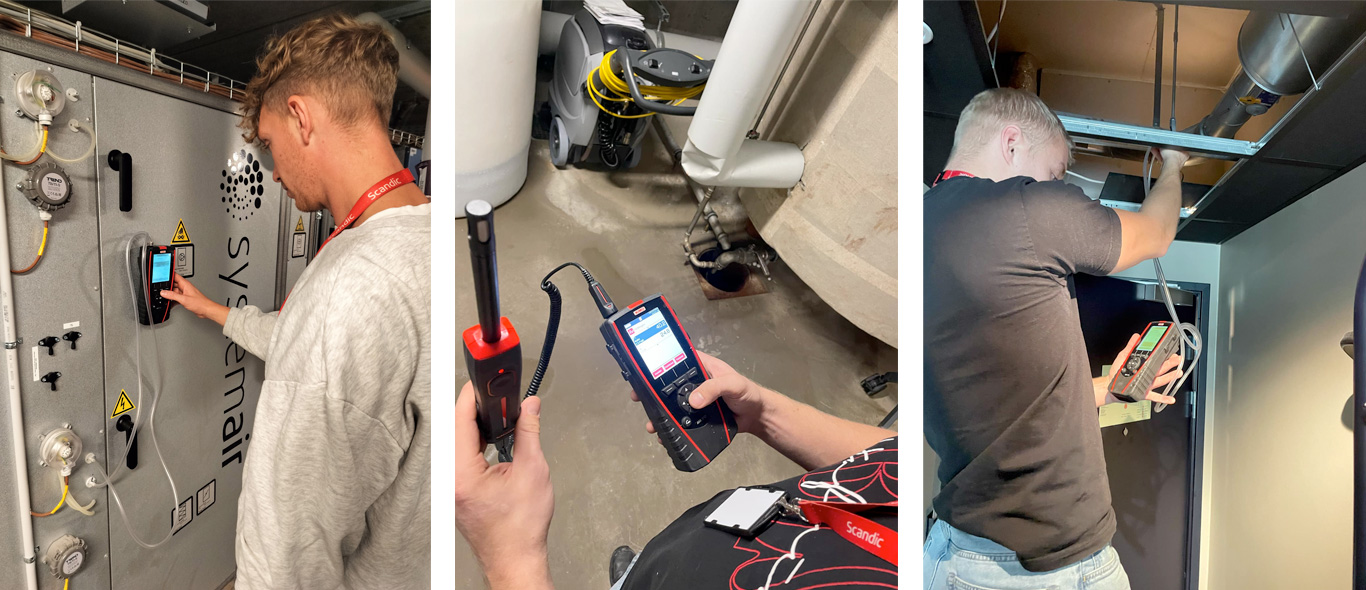 Ventilationsanlægget på hotellet er relativt nyt, og derfor har de studerende måttet kigge på mere innovative måder at forbedre effektiviteten på. Ved hjælp af Elma Instruments’ måleudstyr fra Kimo Sauermann har de studerende undersøgt flere centrale aspekter af ventilationssystemet. De målte blandt andet luftfugtighed og hastighed i udsugningssystemet på badeværelserne for at løse et problem med skimmelsvamp. Målingerne dannede grundlaget for at anbefale fugtighedssensorer, der automatisk justerer ventilationen, når luftfugtigheden overstiger et givet niveau. En anden del af analysen fokuserede på indblæsningsluften i værelserne. For at sikre komfort og sundt indeklima for gæsterne målte de studerende lufthastigheden i indblæsningen. Disse målinger har bidraget til at vurdere, hvorvidt indblæsningsmotorens tryk kunne reduceres uden at kompromittere luftkvaliteten.
